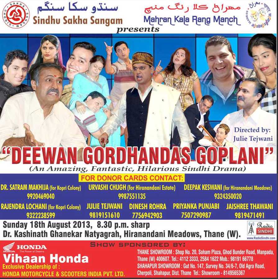 Sindhu Sakha Sangam & Mahran Kala Rang Manch presents Deewan Gordhandas Goplani, Sindhi Comedy Drama at Dr. Kashinath Ghanekar Natyagruha, Hiranandani Meadows, Thane (W)
